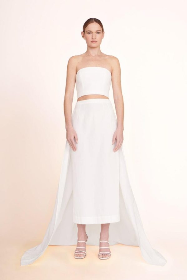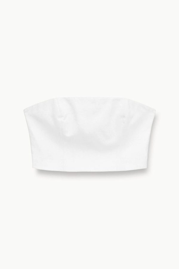 The Nyla Top is a grosgrain cropped tube top with a hook eye closure in the back.