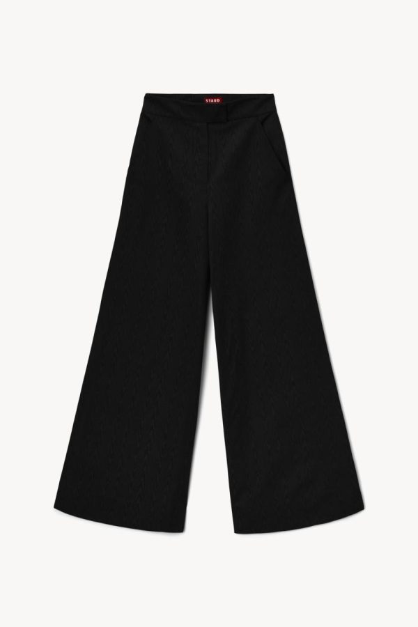 An extra-wide leg pant with full length, the Oak Pant features a woodgrain-embossed moire fabric and can be worn with the Hue Blazer or Ivy Top for a coordinating look.
