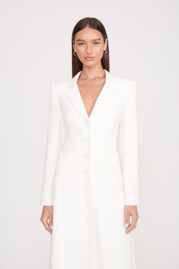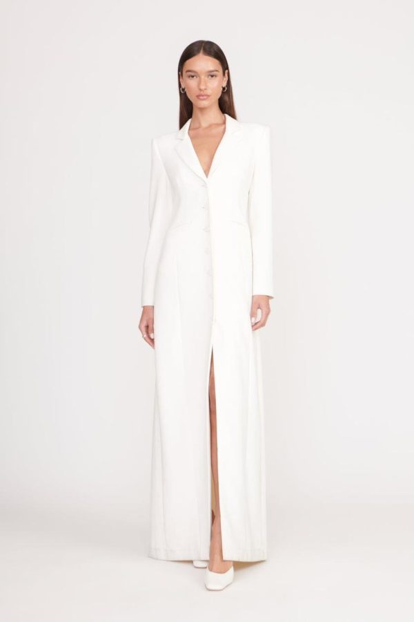 A tailored single-breasted coat that offers a fitted waist, this style features covered buttons and double back vents.