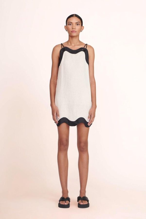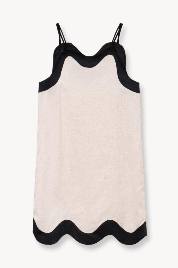 A sleeveless linen trapeze dress, the Renata Dress features contrast wiggle detail and natural rope straps.