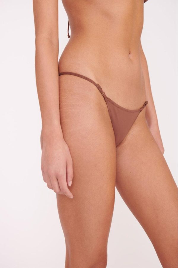 A classic pull-on string bikini bottom, the Sisley offers moderate back coverage in a low-rise string bikini silhouette. This bikini bottom features an adjustable slider detail at the hip to seamlessly pair under a cover-up or swim dress.