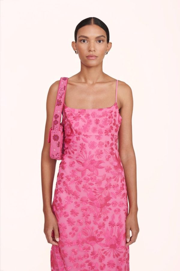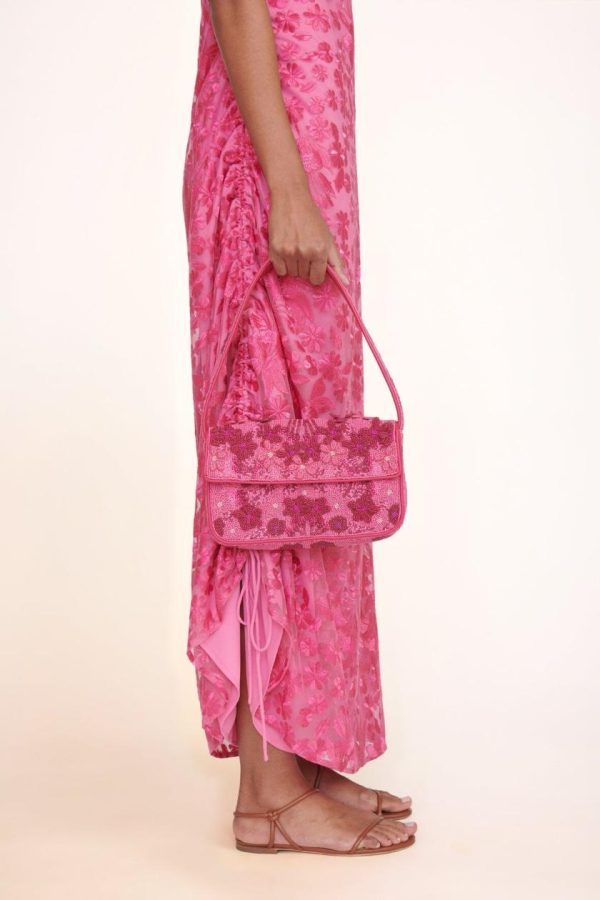 The classic hand-beaded shoulder bag with vegan leather piping. This Tommy update features embellished 3D flowers and magnetic snap closure.