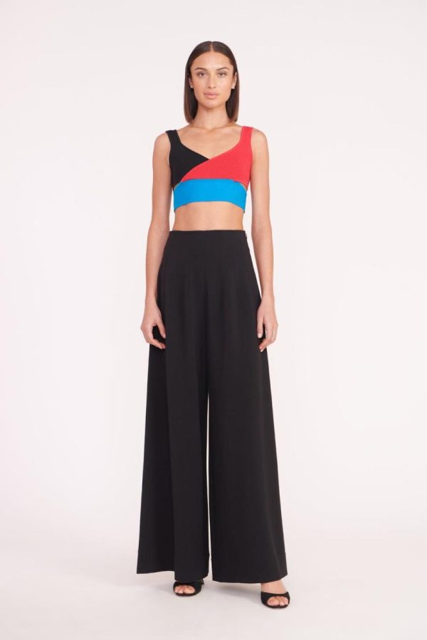 A color-blocked crop top made out of a stretchy compact knit fabric. The Trenton Top features a crossover bust panel detail and completes a set when worn with the matching Karina Skirt.
