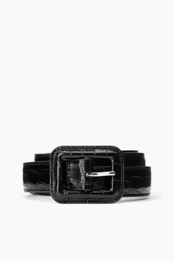 Elevate your denim style with this sophisticated croc-embossed leather belt, designed to be worn comfortably around either your hips or waist for versatile styling options.