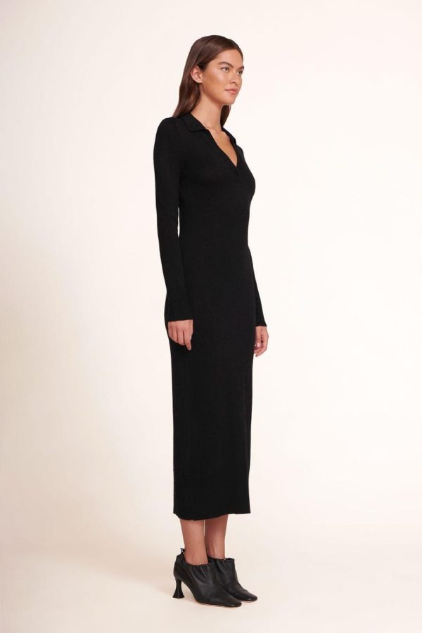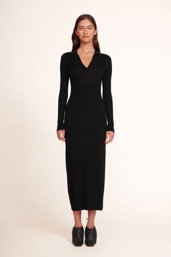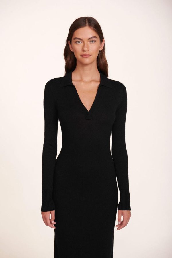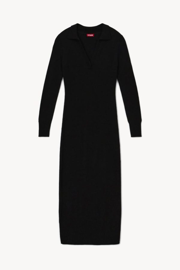 Meet the Crown Dress – a sleek, form-fitting polo dress featuring a sophisticated deep V-neckline. This elegant design includes a stylish side slit and is crafted from premium wool knit fabric for exceptional comfort and drape.