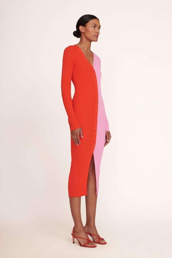 Discover our signature Shoko Sweater, expertly designed to transition effortlessly as both a chic cardigan and elegant dress. This beautiful two-tone piece features a stretchy, comfortable compact rib knit fabric that moves with you
