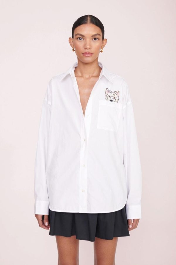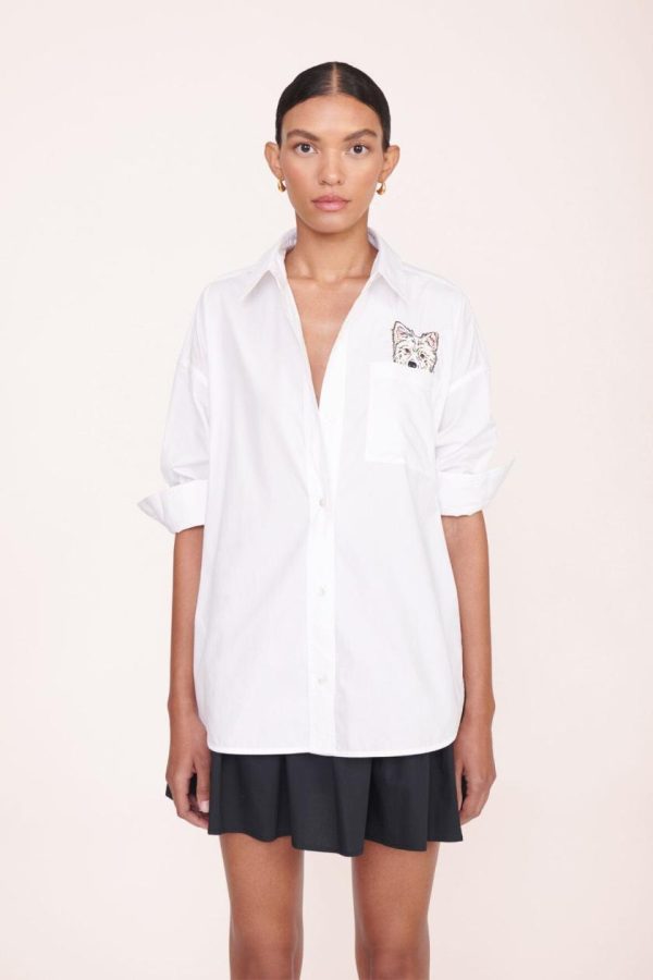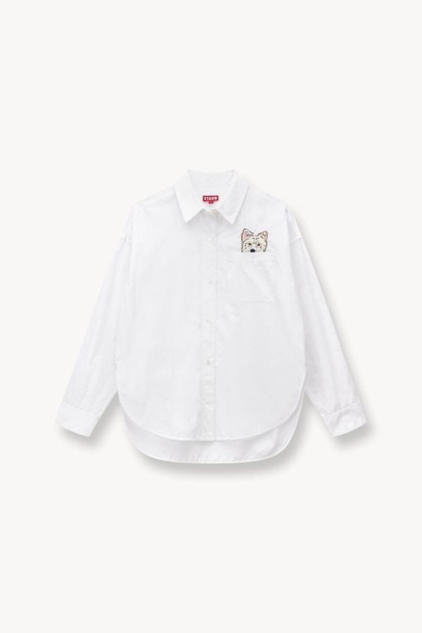 An expertly crafted oversized collared shirt featuring a single patch pocket in crisp cotton poplin fabric.